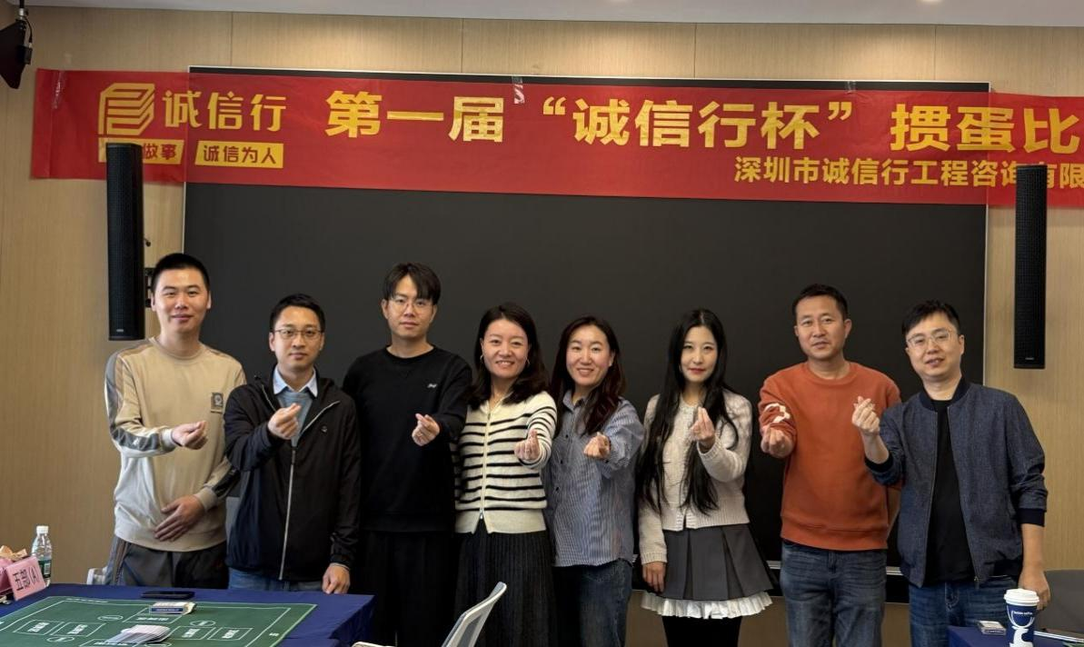 为丰富员工精神文化生活,搭建跨部门沟通协作的桥梁,打破日常工作中的部门壁垒,深圳市诚信行工程咨询有限公司于2025年11月29日(周六)在中海慧智大厦4楼党群服务中心成功举办第一届“诚信行杯”掼蛋比赛主题团建活动。本次活动面向全体员工开放,以趣味盎然的竞技形式,为大家营造了一个轻松愉悦、凝心聚力的团队氛围。