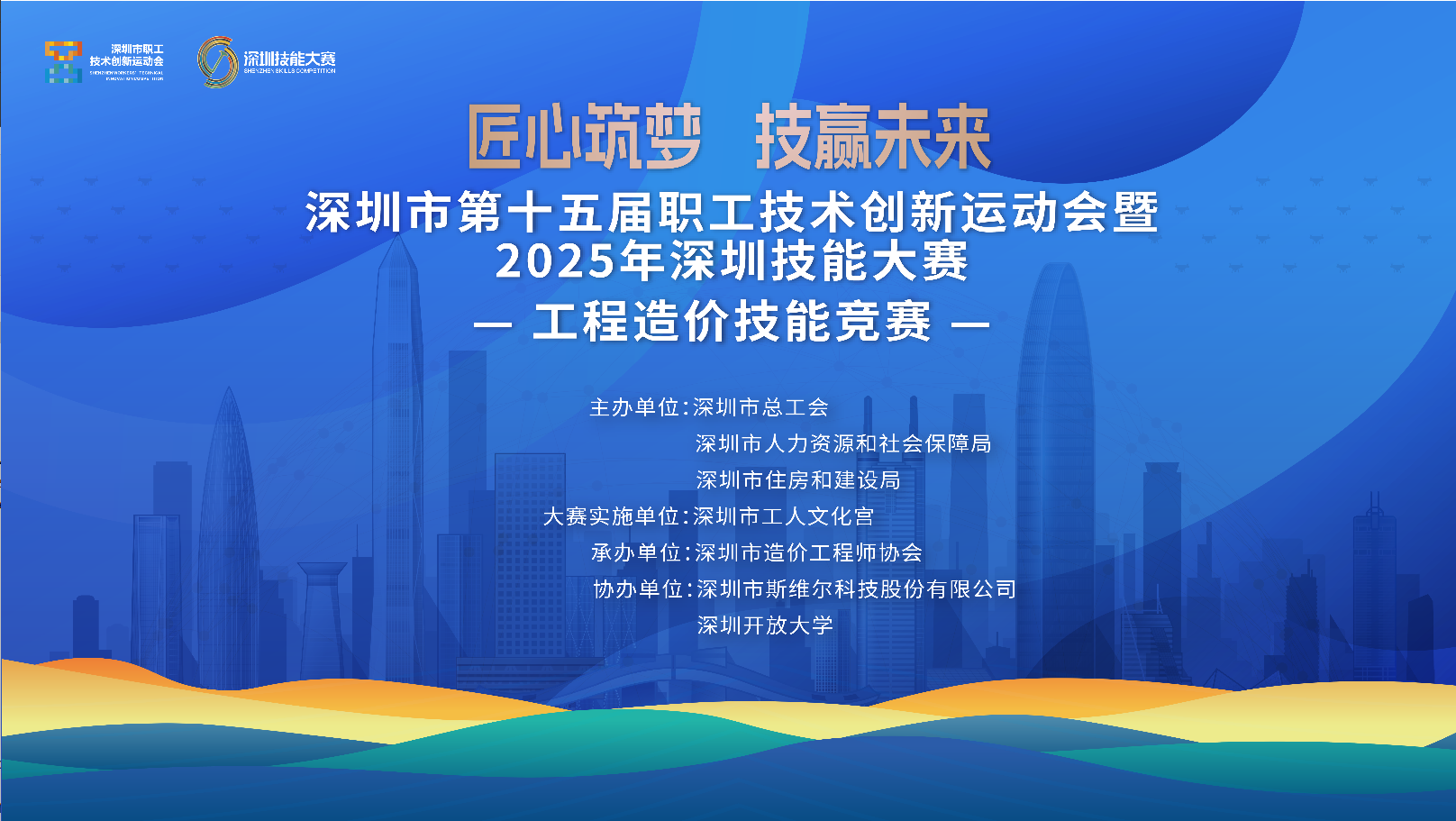 9月28日,深圳市第十五届职工技术创新运动会暨2025年深圳技能大赛——工程造价技能竞赛决赛圆满结束。本次竞赛由深圳市总工会、深圳市人力资源和社会保障局、深圳市住房和建设局联合主办,深圳市工人文化宫指导实施,深圳市造价工程师协会承办,深圳市斯维尔科技股份有限公司、深圳开放大学协办。赛事旨在响应"匠心筑梦、技赢未来"号召,弘扬工匠精神,通过竞赛促进实践能力提升,培养工程造价行业高技能人才,助力行业高质量发展。