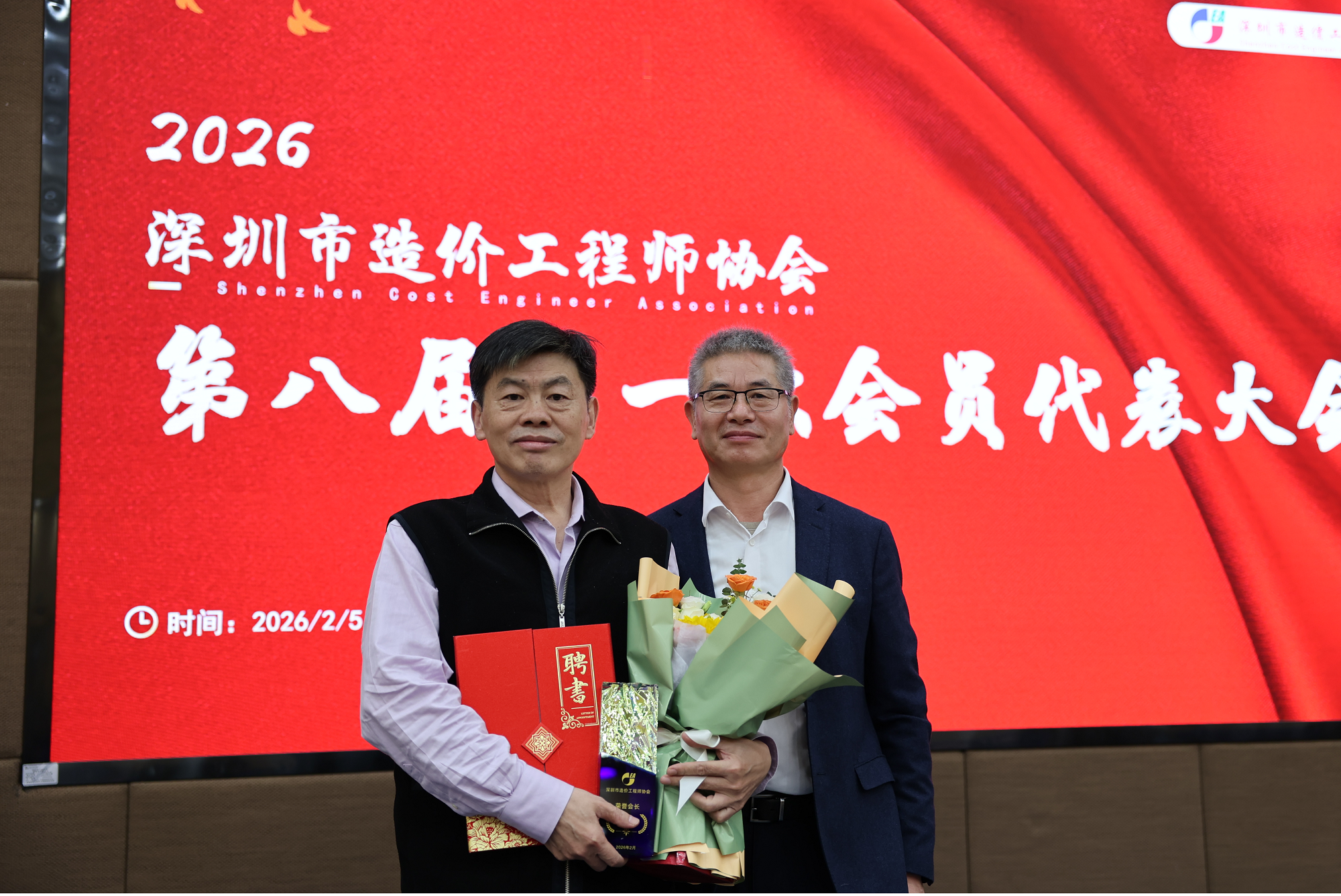 2026年2月5日下午,深圳市造价工程师协会第八届第一次会员代表大会暨第八届第一次理事会、监事会在深圳科学馆一楼报告厅隆重召开,一百多家会员单位代表参加本次大会。深圳市建设工程造价管理站市场部部长孟顺利、深圳市造价工程师协会创会会长陈广言、历届会长贺道明、吴慧博等莅临出席会议,会议由副会长刁洁雨主持。此次大会,不仅是四年一度的换届选举,更是协会总结过去、规划未来、共谋未来的重要契机。